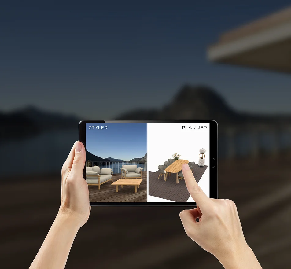 INZPYRE consists of a PLANNER and a ZTYLER module. PLANNER is used in order to plan a certain product setting for example an entire terrasse, kitchen, living room etc. in a fast fun to use way.